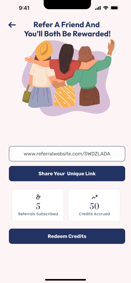 - An annual subscription earns both parties $50 in credits.