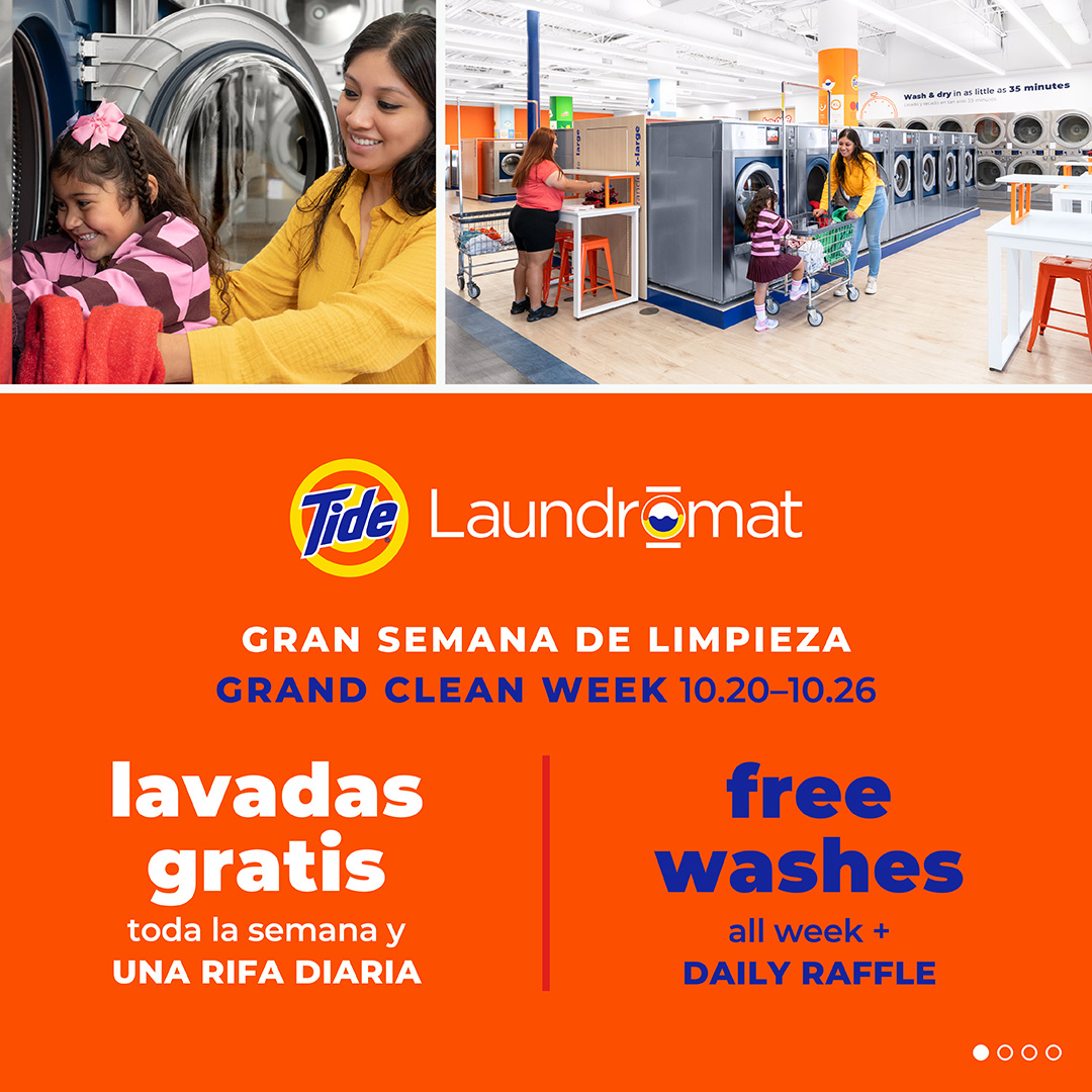 Oct. 20–26 Grand Clean Week: free washes all week (maximum two loads per family) and daily raffles and prizes including a kid’s 24" mountain bike, Beats Solo Buds, a gift certificate to Justin Boot Company, a 50" Insignia TV and more